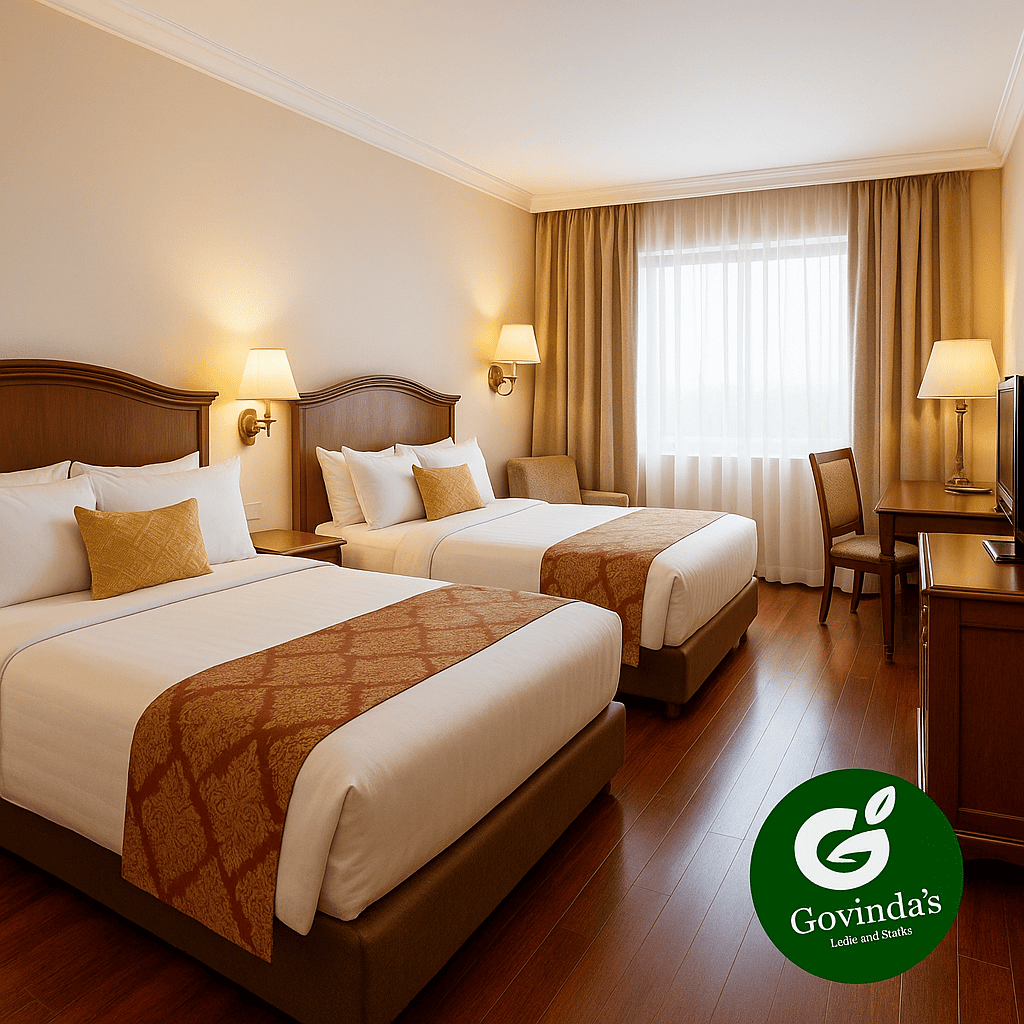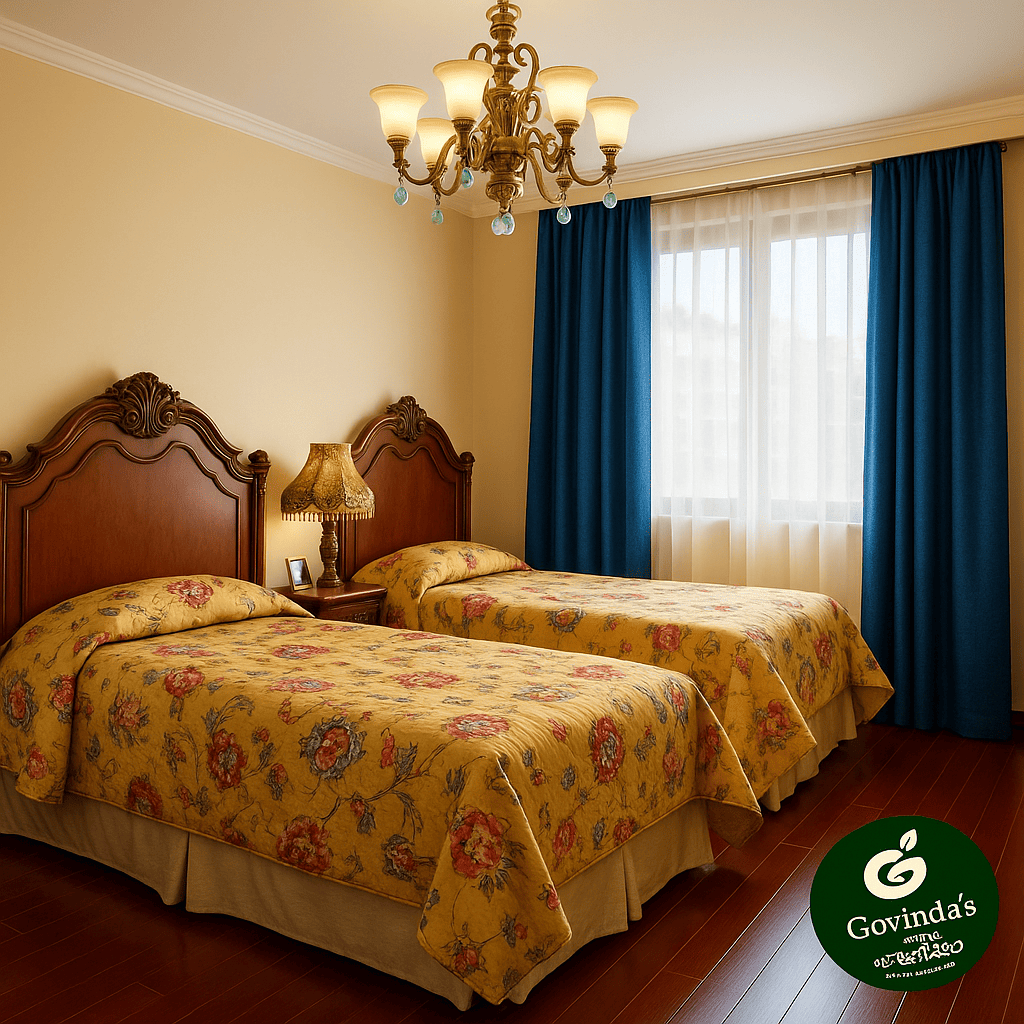 Stay in a serene, clean, and spiritually vibrant environment within ISKCON temple premises — ideal for devotees, families, and pilgrims seeking a peaceful retreat.